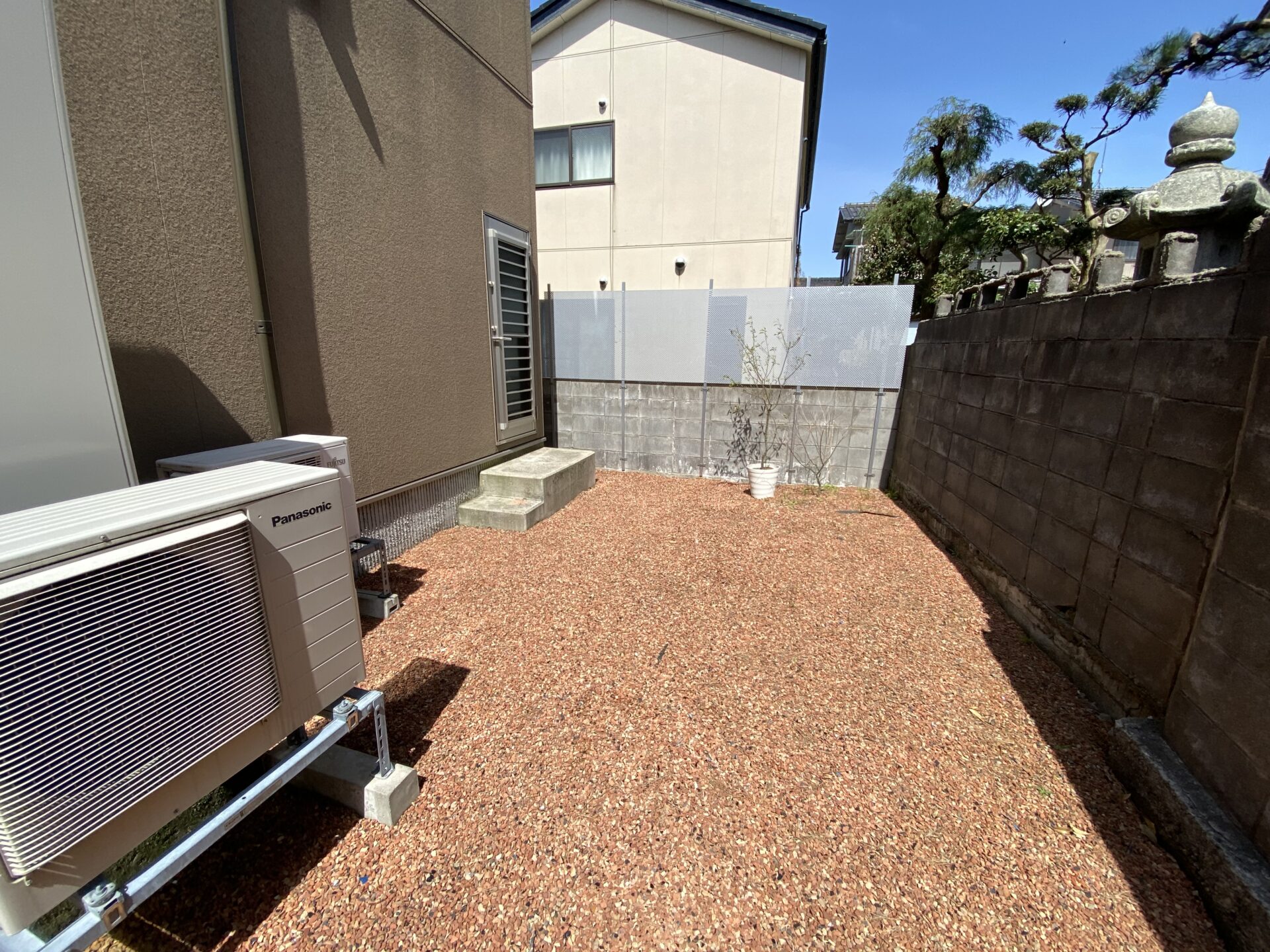 裏のお庭は、お荷物の多い方なら大型の収納庫を置いてもOKですし