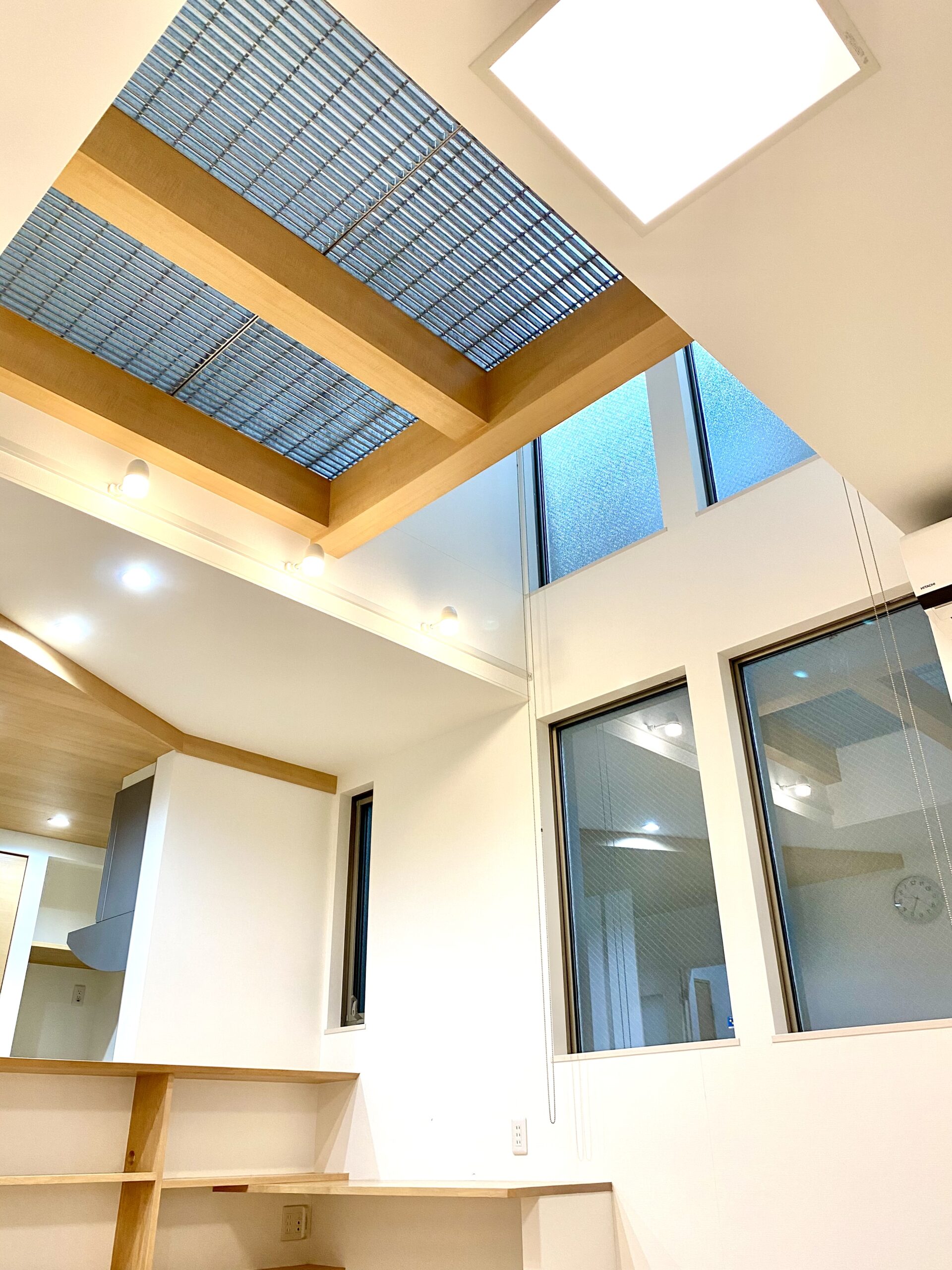 リビングには明り取りを兼ねた吹き抜けがあり2階のサンルームと繋がって